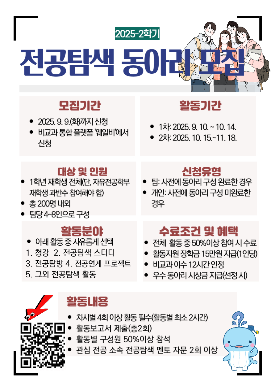 자유전공학부 전공탐색 강화를 위한「전공탐색 동아리」모집 안내
