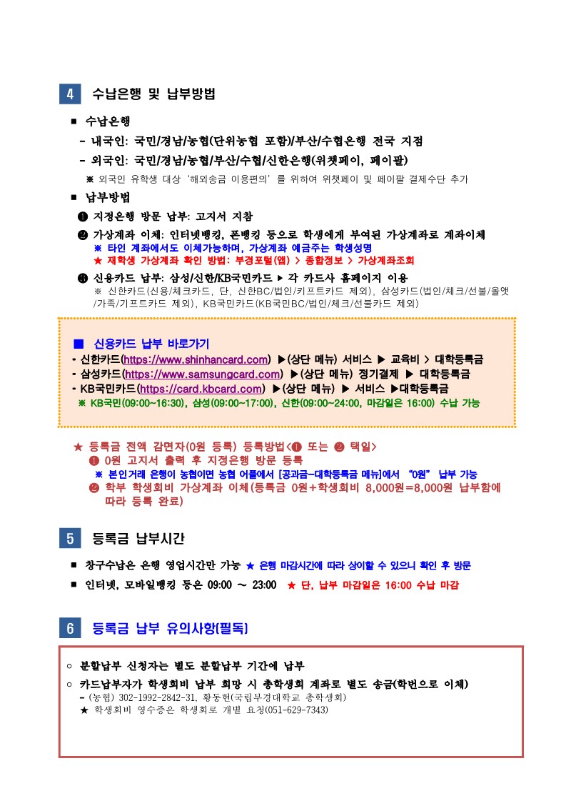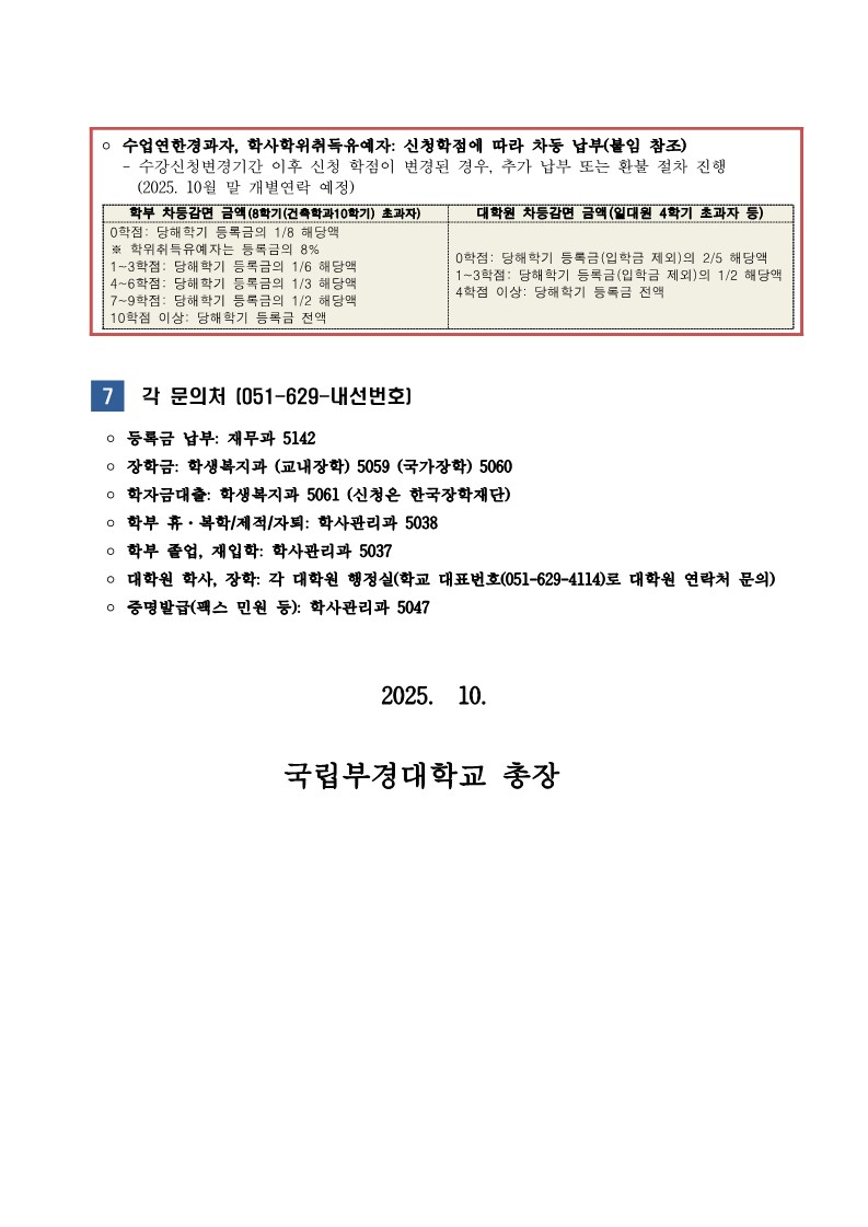 2025학년도 2학기 재(복)학생 등록금 추가2차(최종) 납부 안내