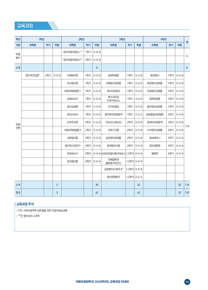 2026학년도 정치외교학과 전공 교육과정(안)
